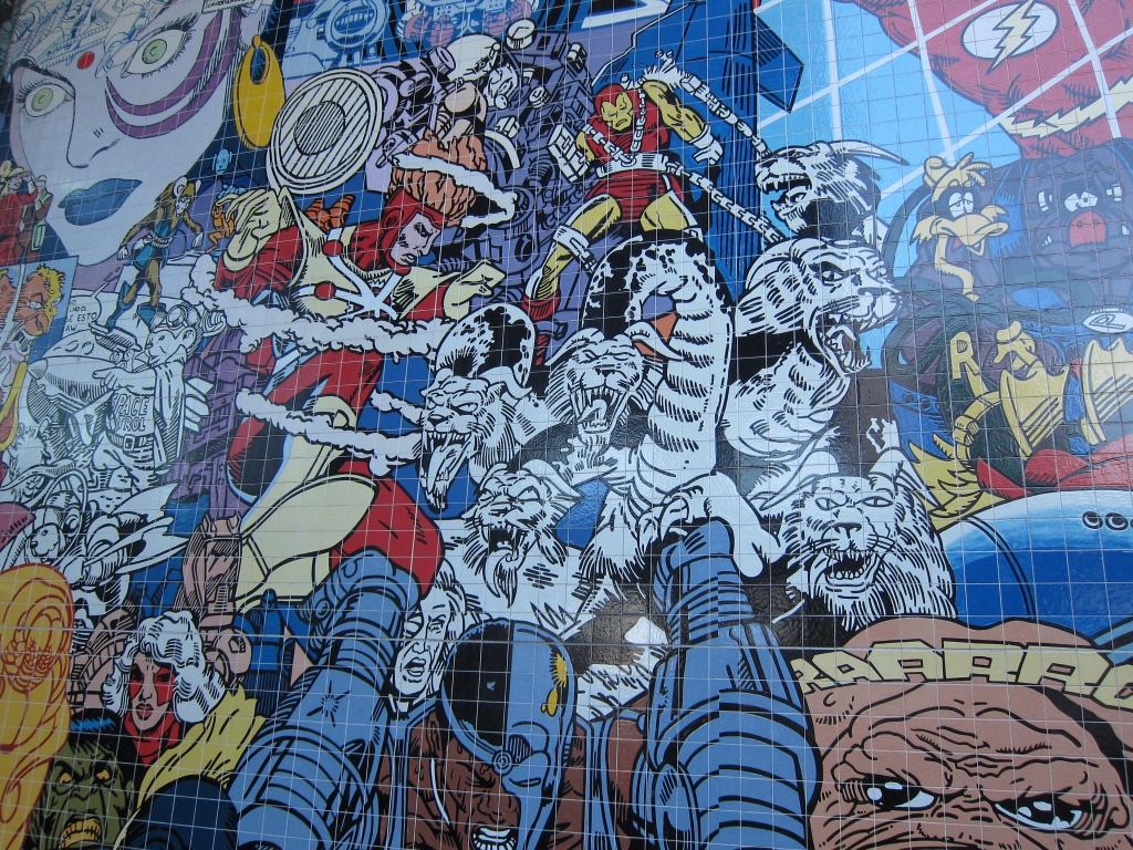 Les tableaux d’Erró racontent souvent des histoires complexes, satiriques et parfois politiques, truffés de références à la culture populaire. Ils présentent un grand nombre de personnages, d’objets et de scènes qui se combinent pour créer une narration visuelle. Ses œuvres invitent souvent les spectateurs à explorer chaque élément pour découvrir de nouvelles facettes de l’histoire. Il utilise une palette de couleurs vives et audacieuses qui attirent l’attention du spectateur. Son travail est également associé au Pop art et au réalisme.